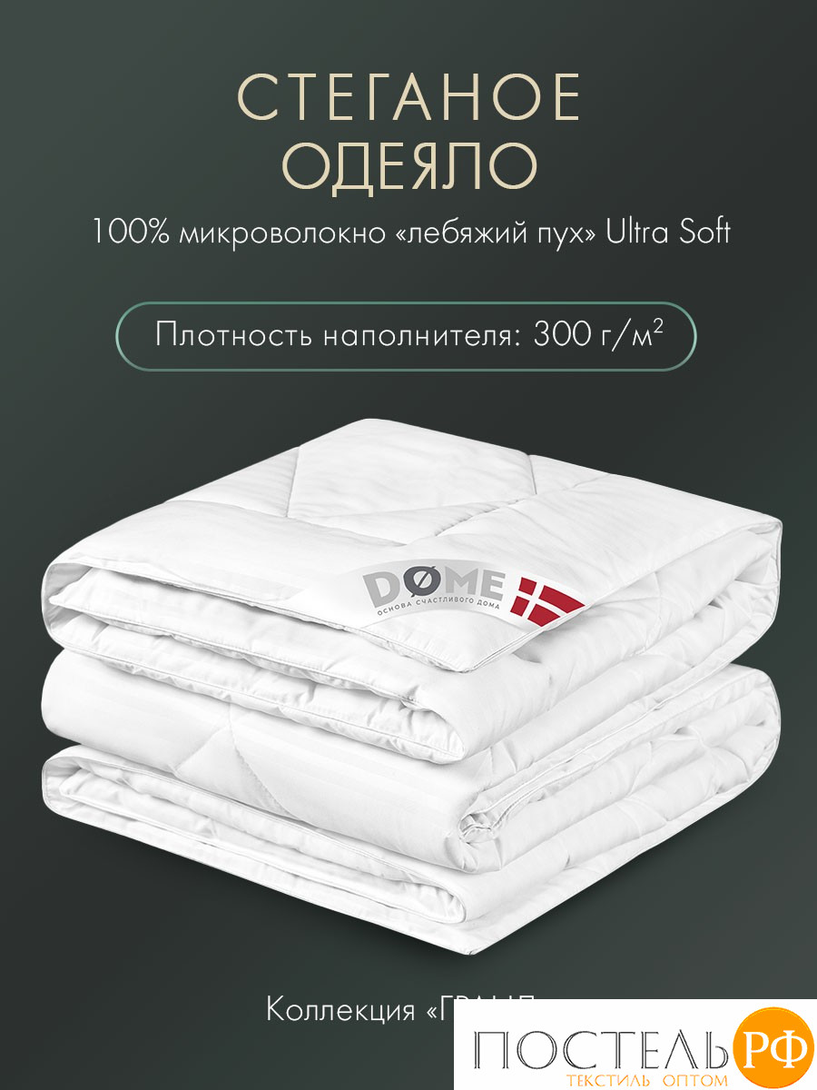 Стеганое одеяло коллекции «Гранд» размером 172*205 см в бренде DOME(ДОМЕ) имеет чехол из 50% бамбукового волокна, 50% микрофибры и наполнитель микроволокно Лебяжий пух Ultra Soft плотностью 300г/м2. Искусственный лебяжий пух Ultra Soft представляет собой тончайшее силиконизированное микроволокно, которое обладает всеми свойствами натурального пуха и является прочным и износостойким. Изделия из лебяжьего пуха гипоаллергенные и не имеют посторонних запахов. Такой наполнитель подходит людям с чувствительной и тонкой кожей. Чехол из плотной смесовой ткани с рисунком в классическую полоску 1х1 см не пропускает частички наполнителя на поверхность изделия. Двуспальное одеяло обрамляет декоративный кант и брендированная угловая лента. Одеяло для дивана или кровати дышит и обеспечивает терморегуляцию необходимую для сна и отдыха в любое время года от летнего до зимнего. Воздушное одеяло легко впишется в интерьер спальни, гостиной и даже детской комнаты вашей квартиры, дома или дачи и пополнит коллекцию постельных принадлежностей.При уходе за изделиями из бамбука рекомендуется только щадящая стирка при температуре 30 градусов, при должном уходе срок службы изделий неограничен.