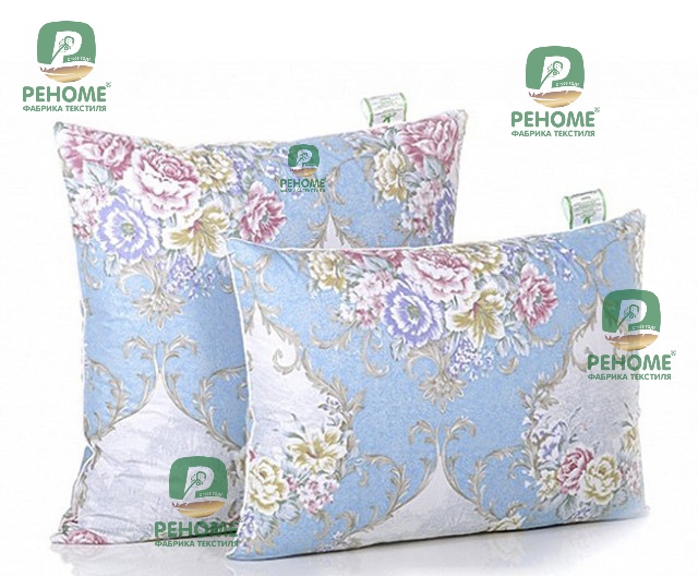Наполнитель – серый гусиный пух (30%) и гусиное перо (70%). Ткань верха 100% хлопок (пуходержащий тик).