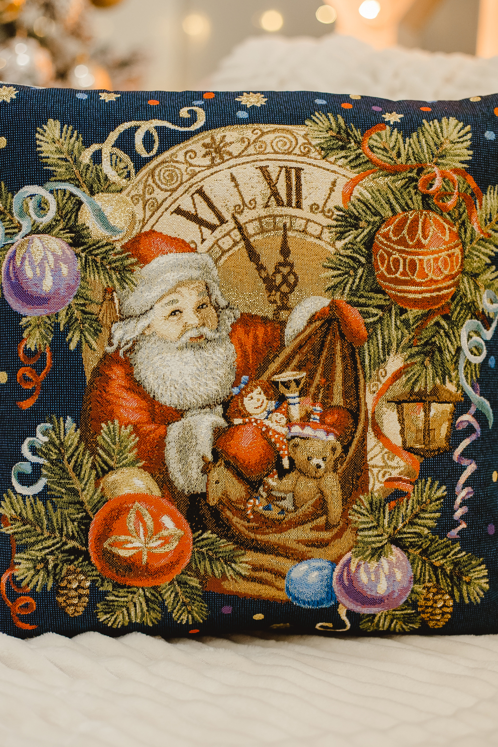 ВАЖНО размер может не много отличаться +- 3 см!!!!! Односторонняя наволочка декоративная размером 45х45 см(+-3см). У наволочки гобеленовой молния находиться в нижнем шве изделия. Уход - машинная стирка при 30 градусах на деликатном режиме с закрытой молнией. Не смешивать при стирке с другими тканями. Утюжить на среднем температурном режиме. При правильном уходе наволочка декоративная прослужит долгие годы в неизменном состоянии: не линяет и не дает усадку. Качественная и удобная в использовании, устойчивая к истиранию красок и деформациям при стирке, такой чехол на подушку будет долгие годы радовать красотой и эстетичностью! Обратная сторона наволочки на диван из однотонной гобеленовой ткани. Прекрасный рисунок на наволочке декоративной новогодней гармонично дополнит самый изысканный интерьер, привлекая внимание своей теплотой и оригинальностью. Мягкий материал необычайно приятен и прочен. Гобеленовое изделие так же подойдет в качестве ПОДАРКА вашим родным на новый год, друзьям и близким маме или бабушке) Цвет: темно-синий; Материал: гобелен;гобелен; Состав: 100% полиэстер.