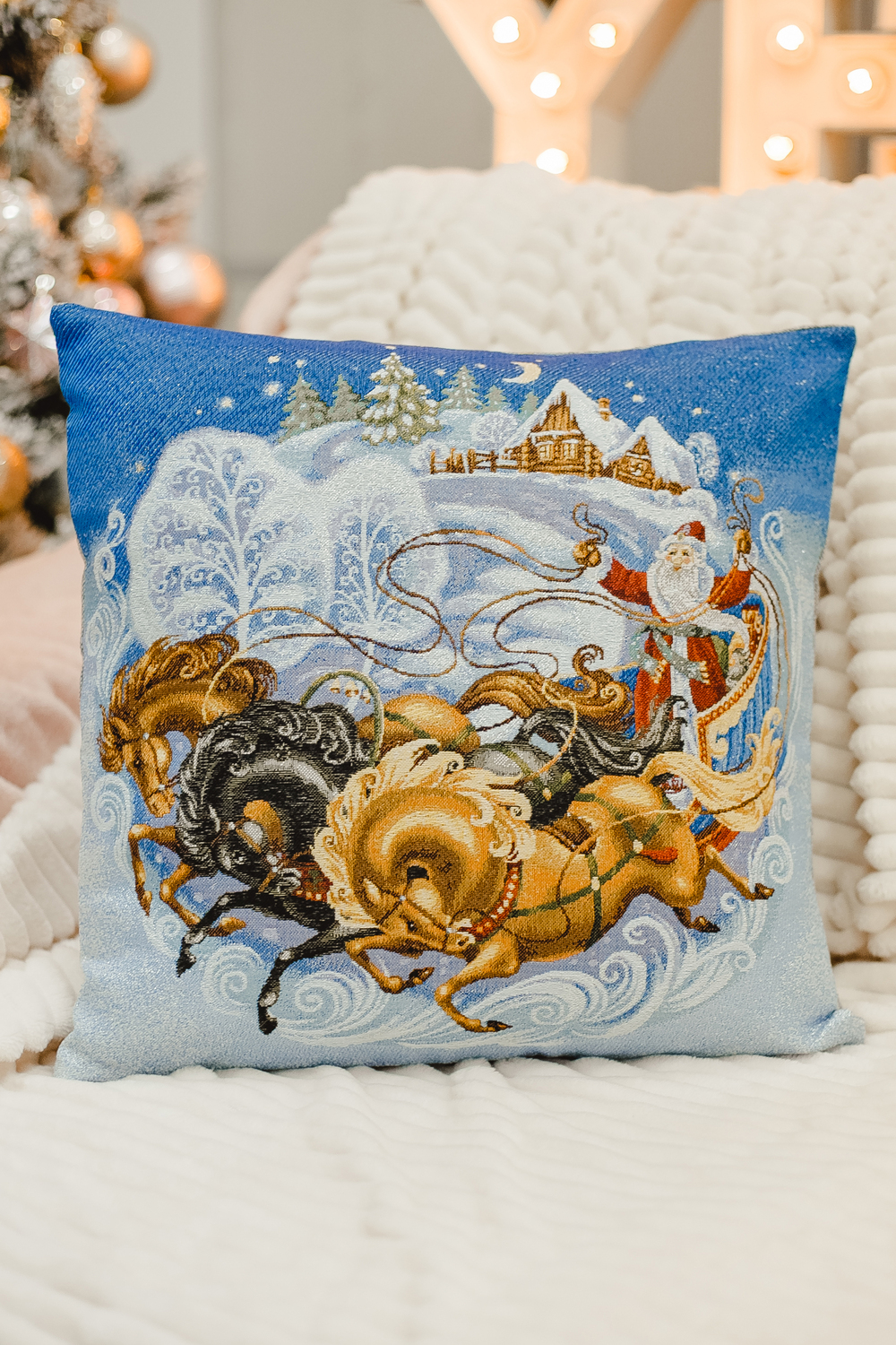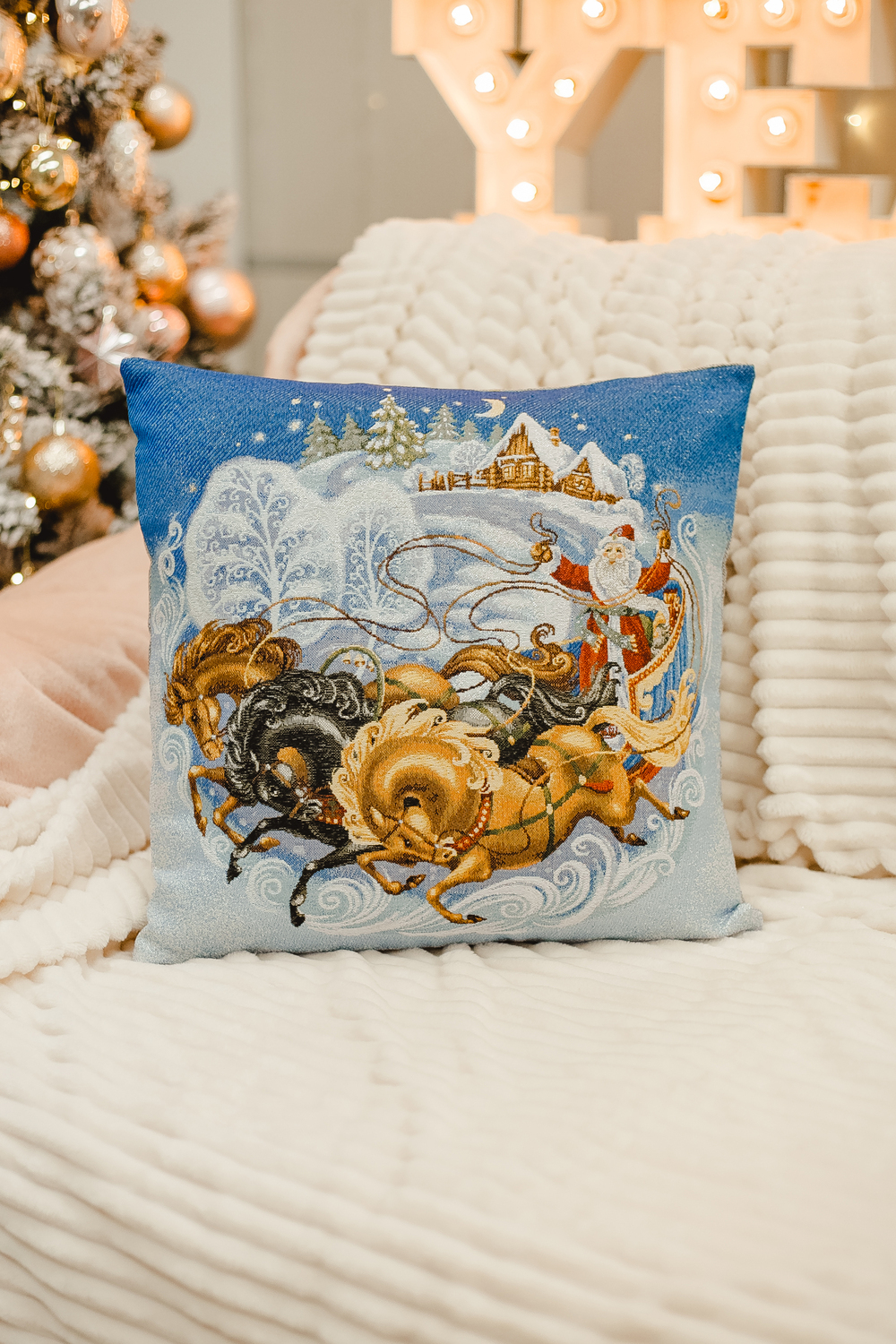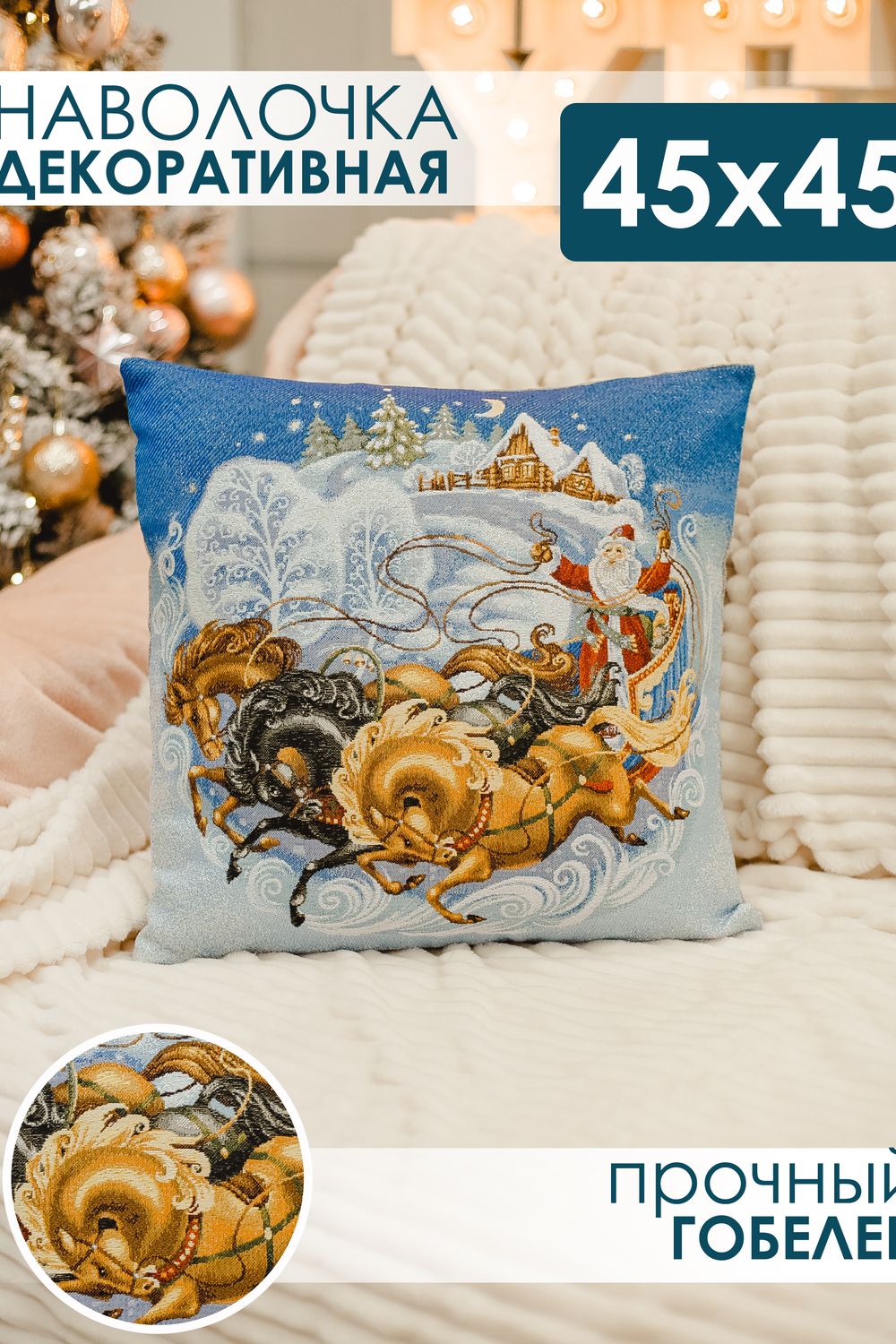 Односторонняя наволочка декоративная размером 45х45 см(+-3см). У наволочки гобеленовой молния находиться в нижнем шве изделия. Уход - машинная стирка при 30 градусах на деликатном режиме с закрытой молнией. Не смешивать при стирке с другими тканями. Утюжить на среднем температурном режиме. При правильном уходе наволочка декоративная прослужит долгие годы в неизменном состоянии: не линяет и не дает усадку. Качественная и удобная в использовании, устойчивая к истиранию красок и деформациям при стирке, такой чехол на подушку будет долгие годы радовать красотой и эстетичностью! Обратная сторона наволочки на диван из однотонной гобеленовой ткани. Прекрасный рисунок на наволочке декоративной новогодней гармонично дополнит самый изысканный интерьер, привлекая внимание своей теплотой и оригинальностью. Мягкий материал необычайно приятен и прочен. Гобеленовое изделие так же подойдет в качестве ПОДАРКА вашим родным на новый год, друзьям и близким маме или бабушке. Цвет: синий; Материал: гобелен;гобелен; Состав: полиэстер 100%.
