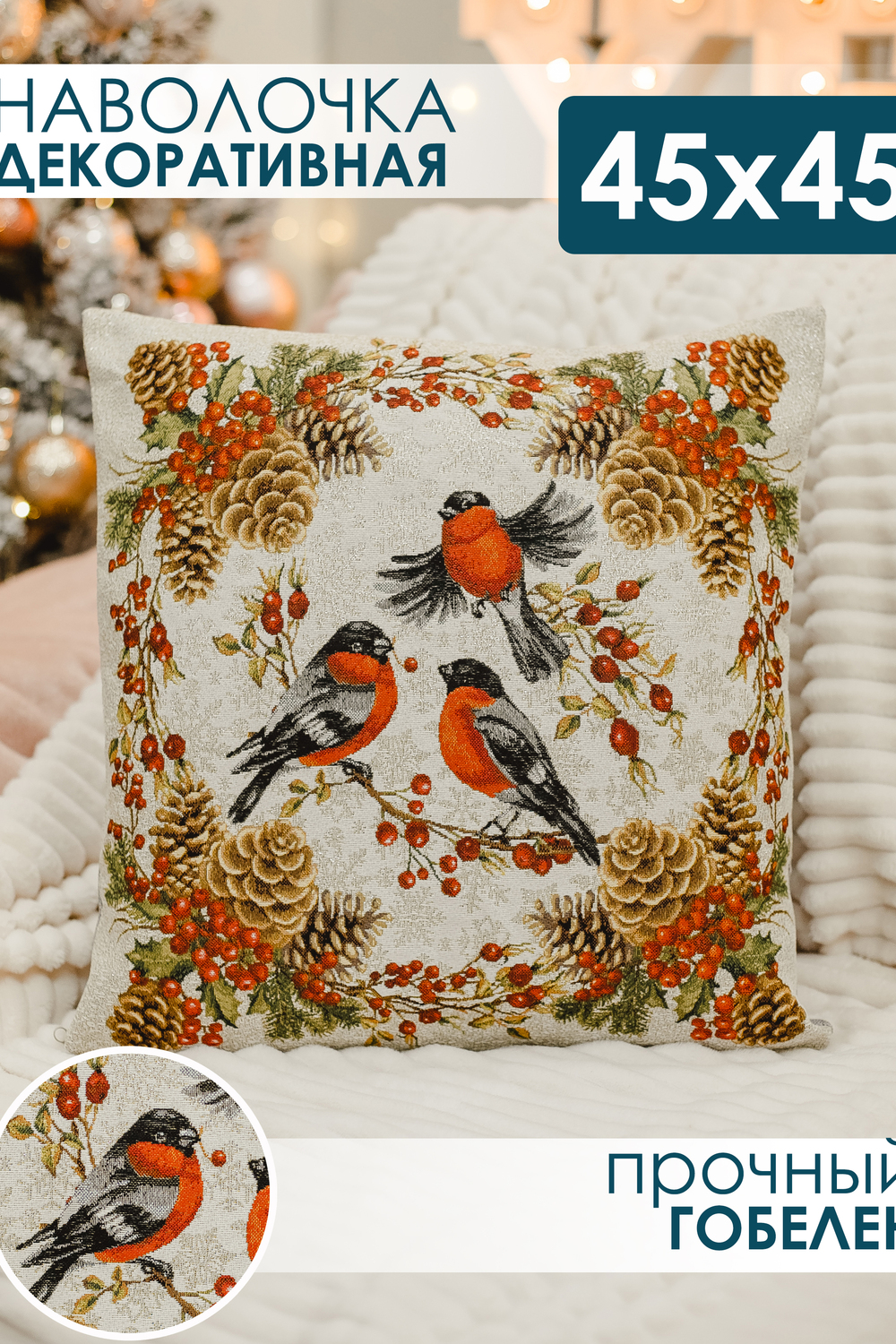 Односторонняя наволочка декоративная размером 45х45 см(+-3см). У наволочки гобеленовой молния находиться в нижнем шве изделия. Уход - машинная стирка при 30 градусах на деликатном режиме с закрытой молнией. Не смешивать при стирке с другими тканями. Утюжить на среднем температурном режиме. При правильном уходе наволочка декоративная прослужит долгие годы в неизменном состоянии: не линяет и не дает усадку. Качественная и удобная в использовании, устойчивая к истиранию красок и деформациям при стирке, такой чехол на подушку будет долгие годы радовать красотой и эстетичностью! Обратная сторона наволочки на диван из однотонной гобеленовой ткани. Прекрасный рисунок на наволочке декоративной новогодней гармонично дополнит самый изысканный интерьер, привлекая внимание своей теплотой и оригинальностью. Мягкий материал необычайно приятен и прочен. Гобеленовое изделие так же подойдет в качестве ПОДАРКА вашим родным на новый год, друзьям и близким маме или бабушке. Цвет: оранжевый; Материал: гобелен;гобелен; Состав: полиэстер 100%.