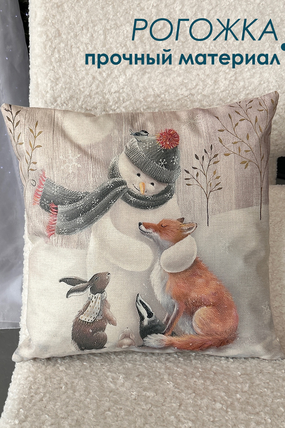 Наволочка 4545 см выполнена из качественного полотна рогожка. Лицевая сторона украшена новогодним рисунком, который придаёт интерьеру глубину и динамику, а обратная сторона однотонная, что облегчает сочетание с другими элементами декора. Ткань мягкая, гладкая и очень приятная на ощупь, дарит тактильный комфорт при прикосновении и выглядит элегантно вблизи. Рогожка обеспечивает износостойкость, устойчивость к выцветанию и простоту ухода наволочка легко стирается, быстро сохнет и сохраняет форму даже после многократных стирок. Потайная молния аккуратно спрятана в шве и не нарушает целостности узора, позволяя быстро снять чехол для стирки и при этом сохранять аккуратный внешний вид. Изделие мало мнётся и долговечно, поэтому прекрасно подходит для повседневного использования в спальне, гостиной или детской, а также станет стильным и практичным подарком. Сочетание визуальной выразительности рисунка с Новым годом и нежной гладкой ткани делает эту наволочку универсальным элементом, который добавит уюта и современности любому интерьеру. Отличный подарок на Новый год. Цвет: бежевый; Материал: рогожка;рогожка; Состав: полиэстер 100%.