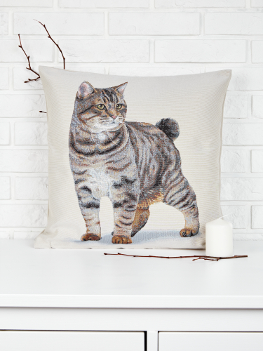 Рисунок создается переплетением нитей различных цветов и фактуры. Состав ткани: хлопок ( дающий фактуру и приятную тактильность ) и синтетические нити ( придающие износостойкость ). Плотность гобелена 410 г на кв.метр.
