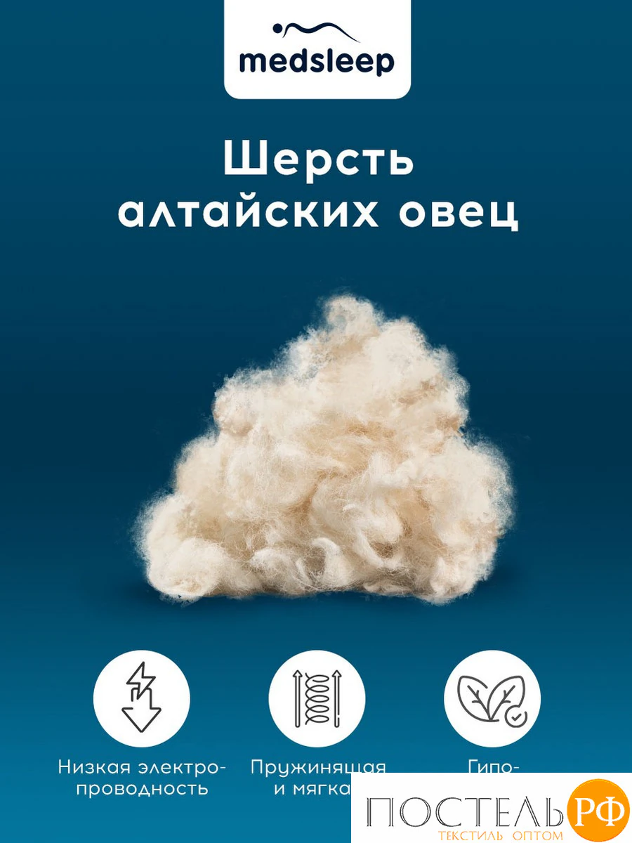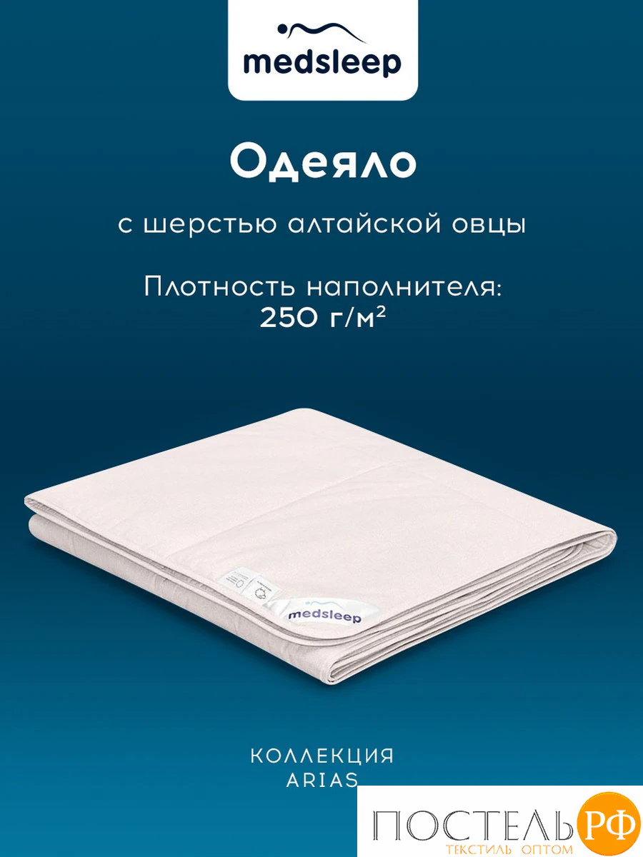 Всесезонное стеганое одеяло Aries от бренда MedSleep - ваш ключ к уюту в любое время года. Чехол одеяла выполнен из 100% хлопкового тика, который обеспечивает мягкость и воздухопроницаемость. Наполнитель из 70% шерсти алтайской овцы и 30% микроволокна плотностью 250 г/м2 гарантирует легкость и тепло, создавая уютную атмосферу каждую ночь.