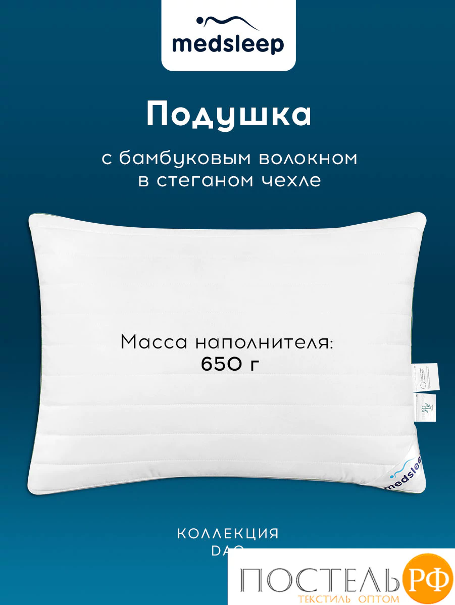 Бамбуковая подушка стеганая коллекции «Dao» в размере 70*70 имеет чехол из смесовой ткани 50% бамбуковое волокно и 50% микрофибра, наполнитель чехла 70% бамбуковое волокно и 30% микроволокно Лебяжий пух. Наполнитель ядра подушки 100% микроволокно Лебяжий пух Ultra Soft. Масса наполнителя: 950гр.