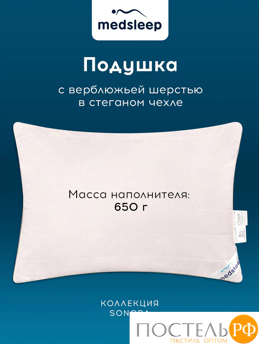 Шерстяная подушка стеганая коллекции «Sonora» в размере 70*70 имеет чехол из 100% хлопка-тик, наполнитель чехла 70% пух австралийского верблюда и 30% микроволокно, наполнитель ядра 100% микроволокно.