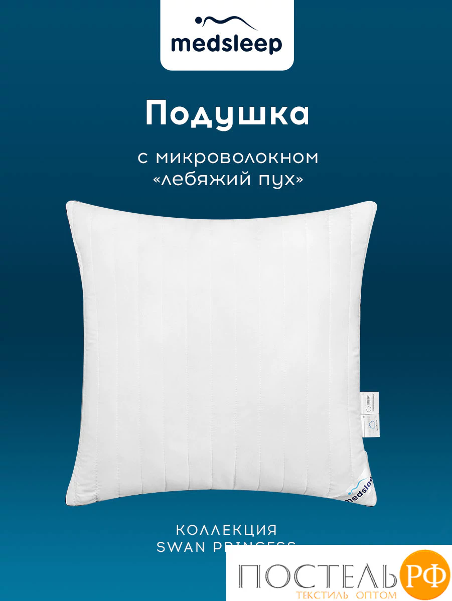 Подушка стеганая коллекции «Swan Princess» в размере 70*70 имеет чехол из смесовой ткани 50% бамбукового волокна, 50% микрофибры, наполнитель чехла и ядра подушки 100% силиконизированное микроволокно «Лебяжий пух» Ultra Soft.