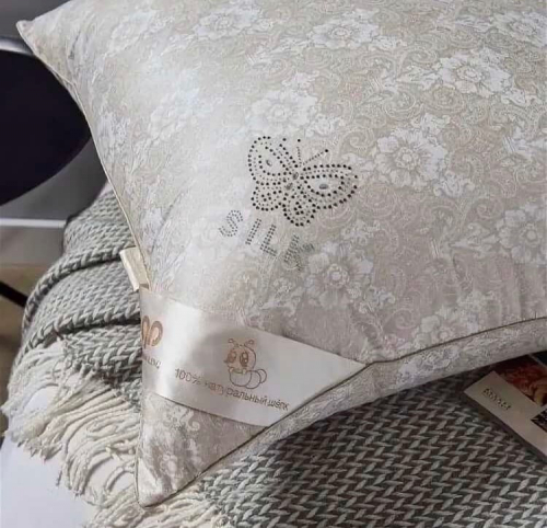 Подушка двухкамерная, наполнитель лебяжий пух (искусственный заменитель), ткань тик, 100% хлопок, упаковка чемодан.