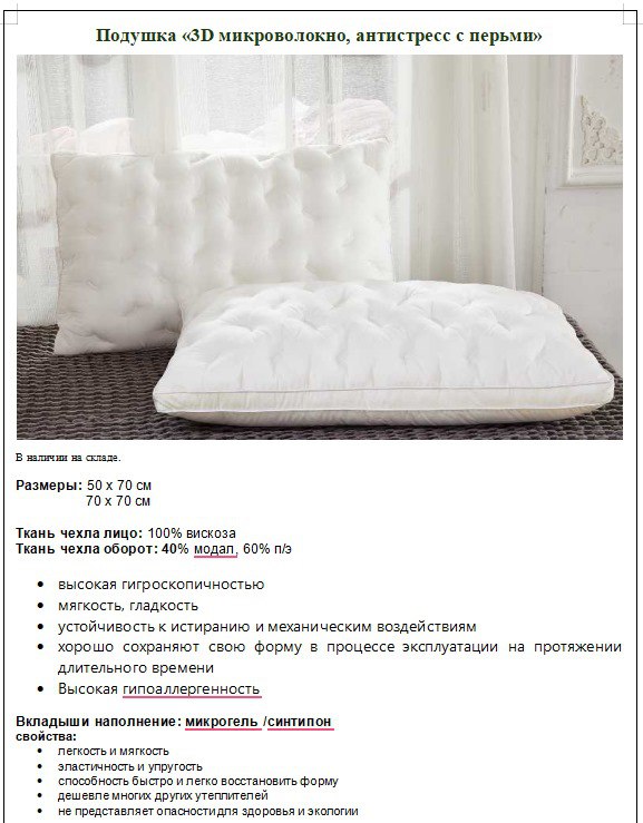 Очень хорошая подушка. Покупаю уже второй раз. Использую первую около двух лет. Внешний вид и качество после двух лет ежедневного использования не изменились. Однозначно советую.