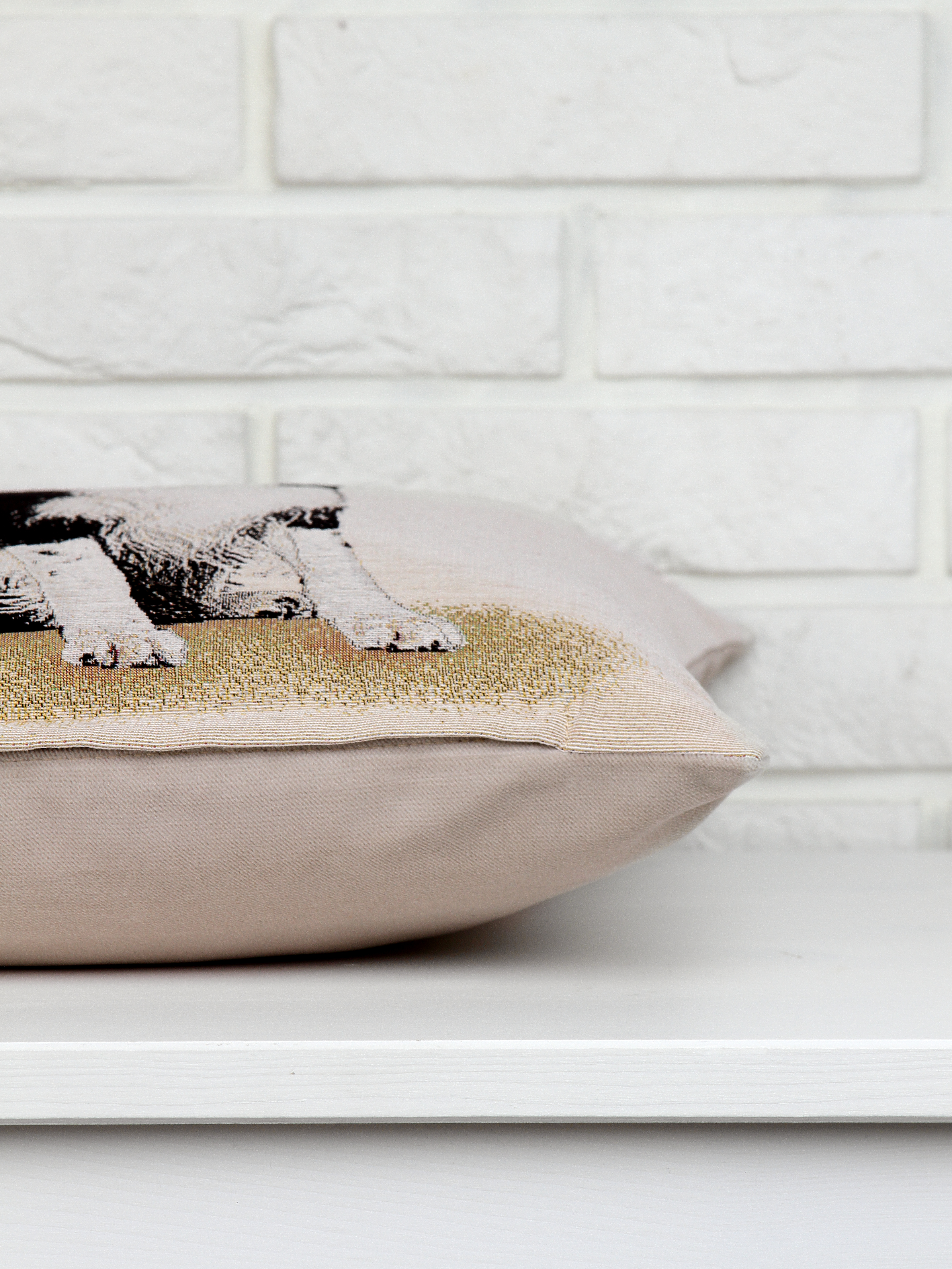 Рисунок создается переплетением нитей различных цветов и фактуры. Состав ткани: хлопок ( дающий фактуру и приятную тактильность ) и синтетические нити ( придающие износостойкость ). Плотность гобелена 410 г на кв.метр.