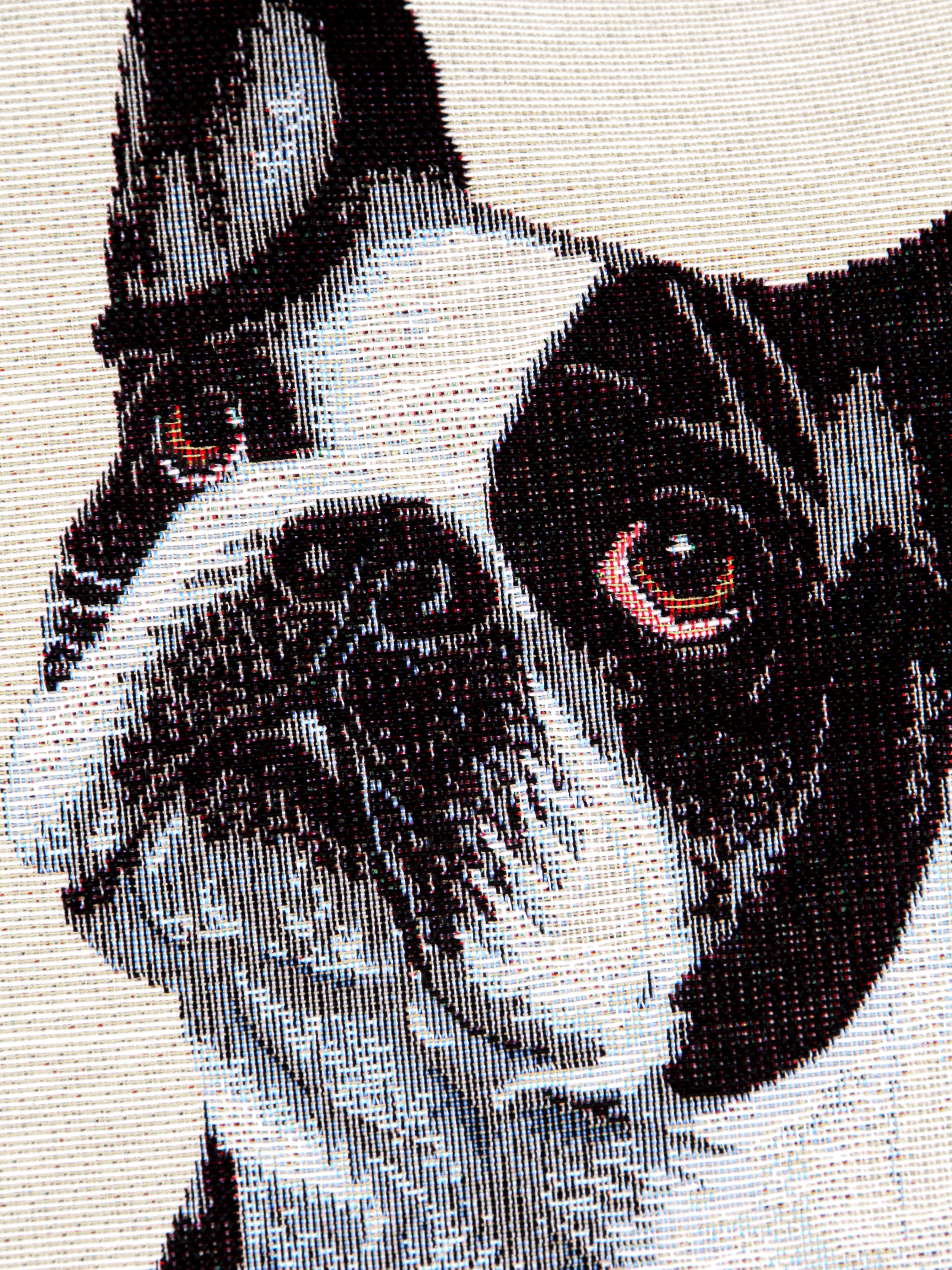 Рисунок создается переплетением нитей различных цветов и фактуры. Состав ткани: хлопок ( дающий фактуру и приятную тактильность ) и синтетические нити ( придающие износостойкость ). Плотность гобелена 410 г на кв.метр.