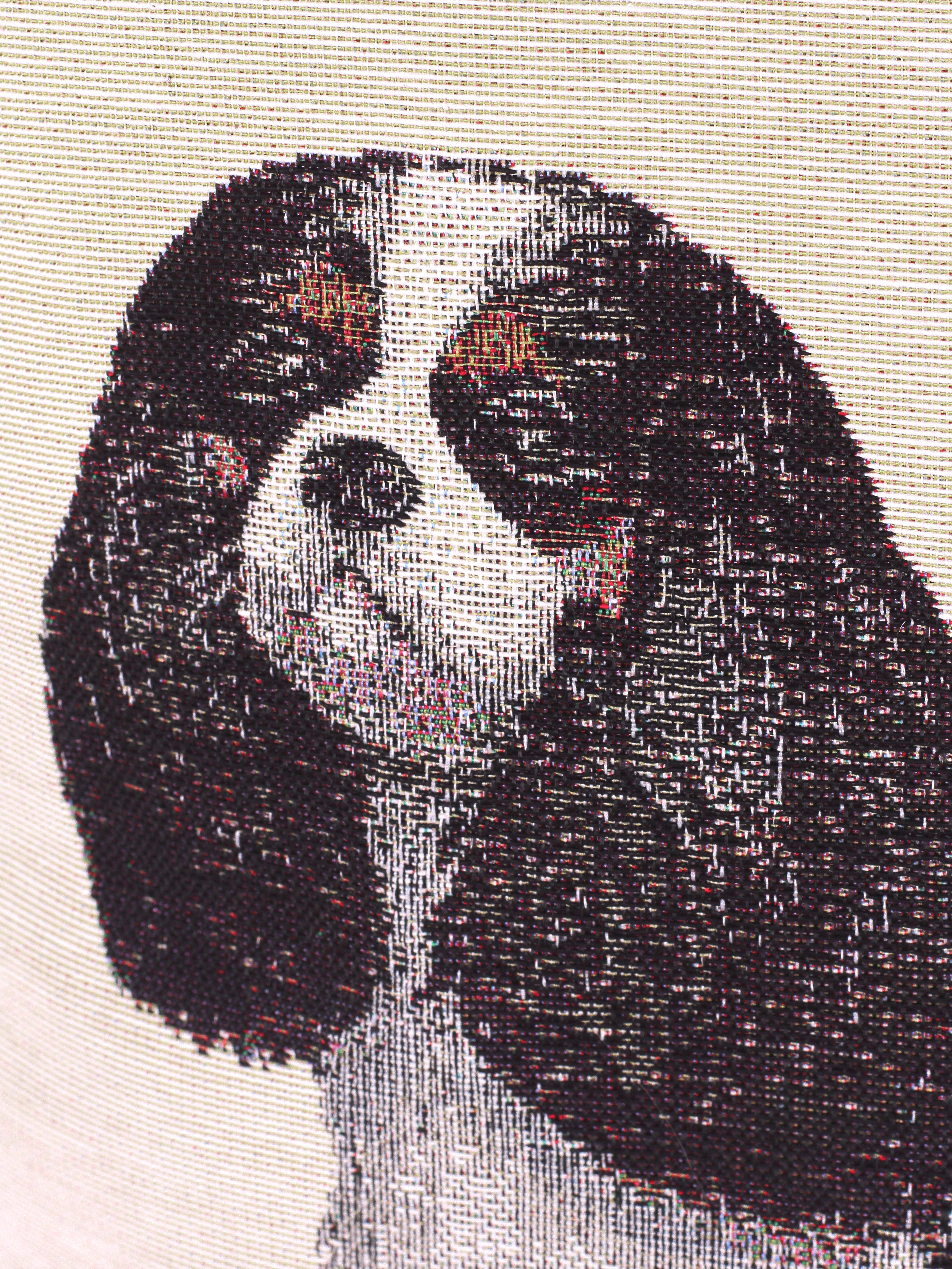 Рисунок создается переплетением нитей различных цветов и фактуры. Состав ткани: хлопок ( дающий фактуру и приятную тактильность ) и синтетические нити ( придающие износостойкость ). Плотность гобелена 410 г на кв.метр.