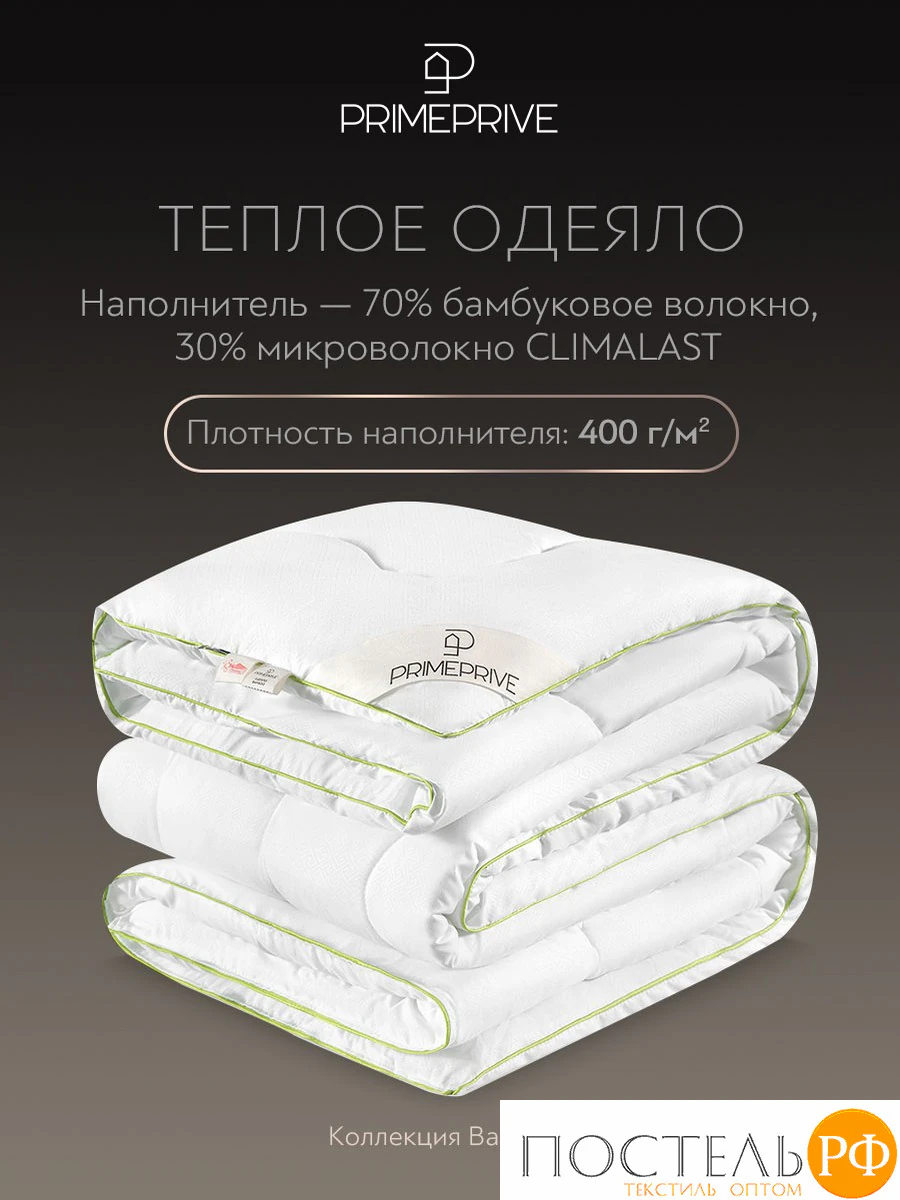 Теплое стеганое одеяло коллекции Bamboo от бренда PRIME PRIVE — это идеальное сочетание комфорта и заботы о природе. Чехол одеяла выполнен из 100% микрофибры Climalast fiber, а наполнитель состоит из 70% бамбукового волокна и 30% микроволокна Climalast с плотностью 400 г/м2.