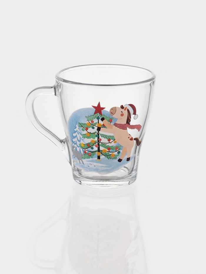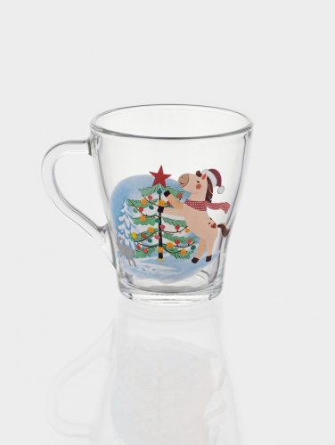 Новогоднее настроение — в каждой детали! Новогодняя кружка объёмом 250 мл — это прозрачная стеклянная посуда с праздничным рисунком в честь символа года. Яркий принт делает её готовым подарком для близких, коллег или друзей, которые ценят уютные ритуалы зимних вечеров.