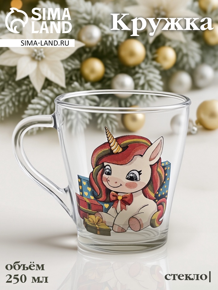 Праздник — это когда верится в чудо с первого глотка. Стеклянная кружка с новогодними единорогами соединяет зимнюю сказку и фантазию. Она подойдёт тем, кто любит нестандартные детали в интерьере, магию единорогов и праздничные образы с налётом волшебства.