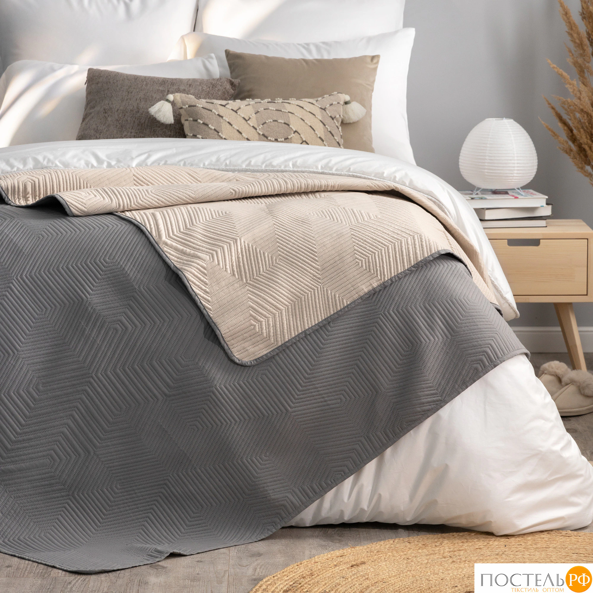 Покрывало из мягкой микрофибры подарит нежные тактильные ощущения и создаст атмосферу тепла и комфорта. Фигурная термостёжка не только украшает изделие, но и обеспечивает его долговечность, сохраняя безупречную форму покрывала.