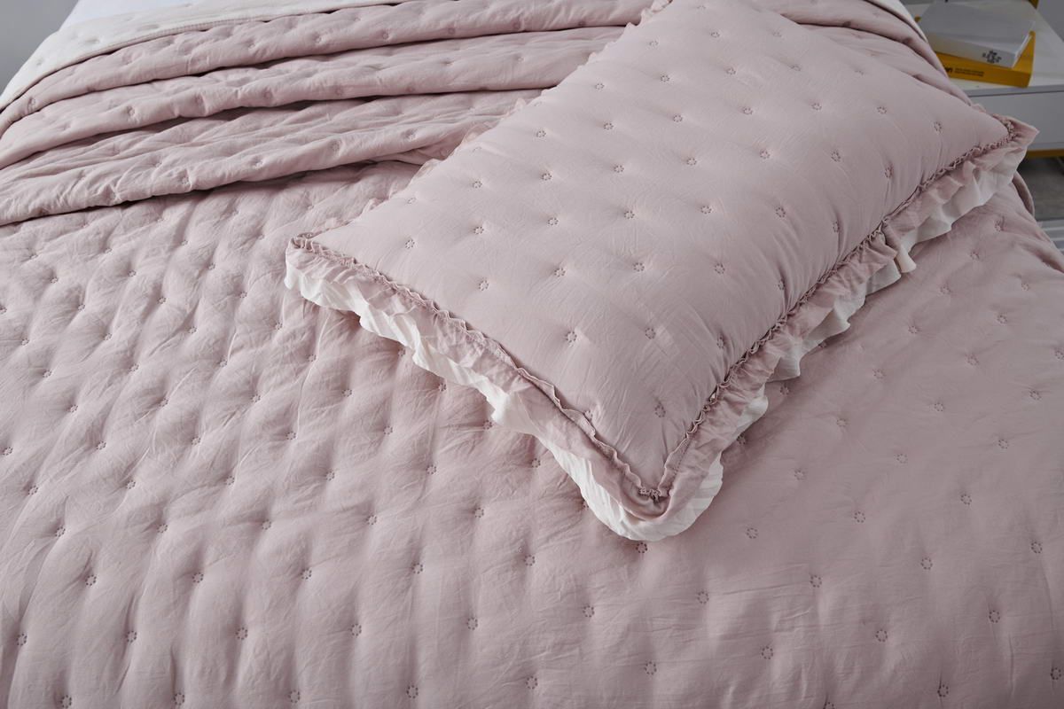 Особенность: рюша на наволочках и покрывале; двустороннее использование
