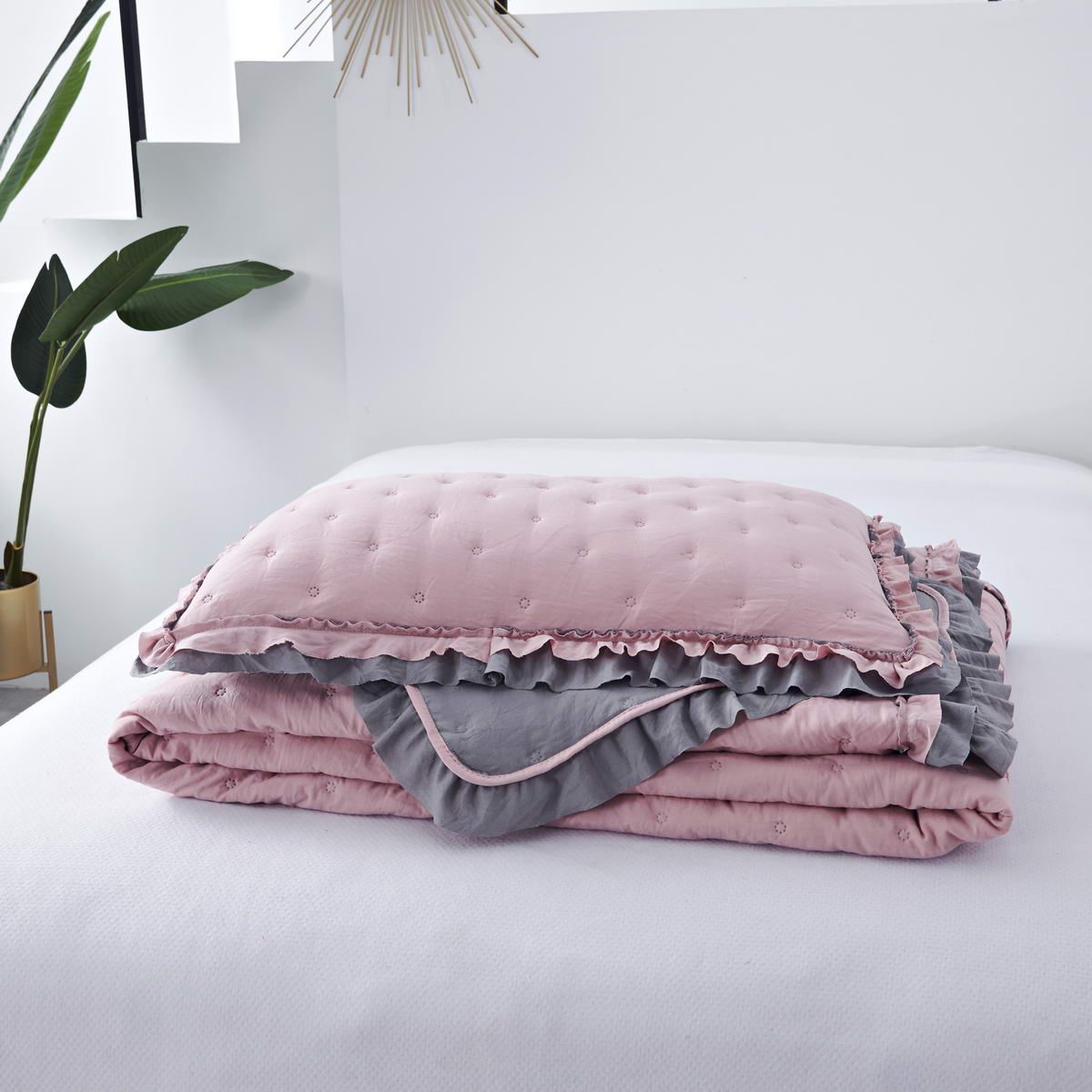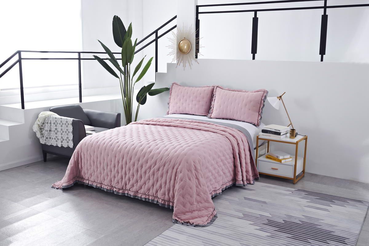 Особенность: рюша на наволочках и покрывале; двустороннее использование