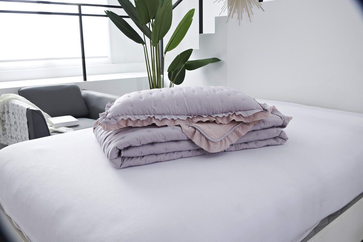 Особенность: рюша на наволочках и покрывале; двустороннее использование