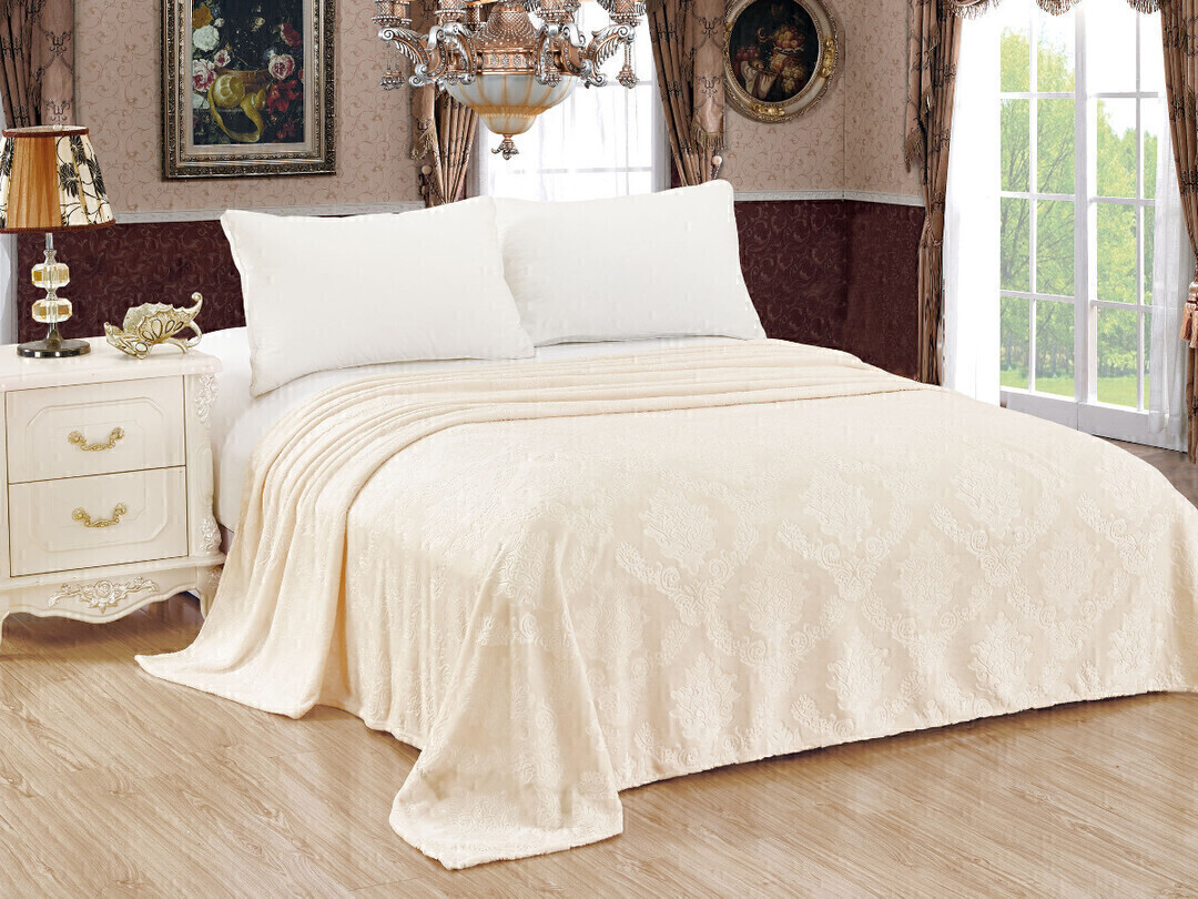 Плед однотонный жаккард в пакете Реноме, 062 вензель молочный