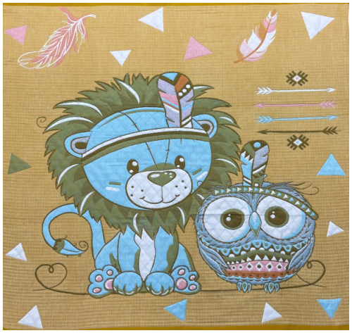 Плед вафельный СЛОНИК С СОВОЙ - голубой р-р 110х110