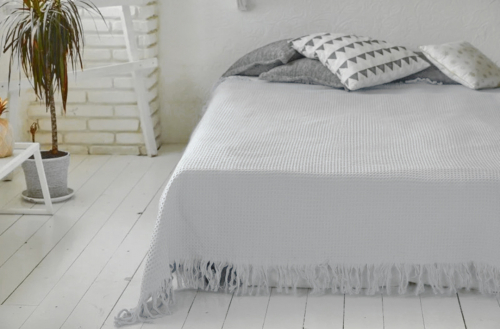Покрывало вафельное Пике с бахромой Сафия Хоум, серый