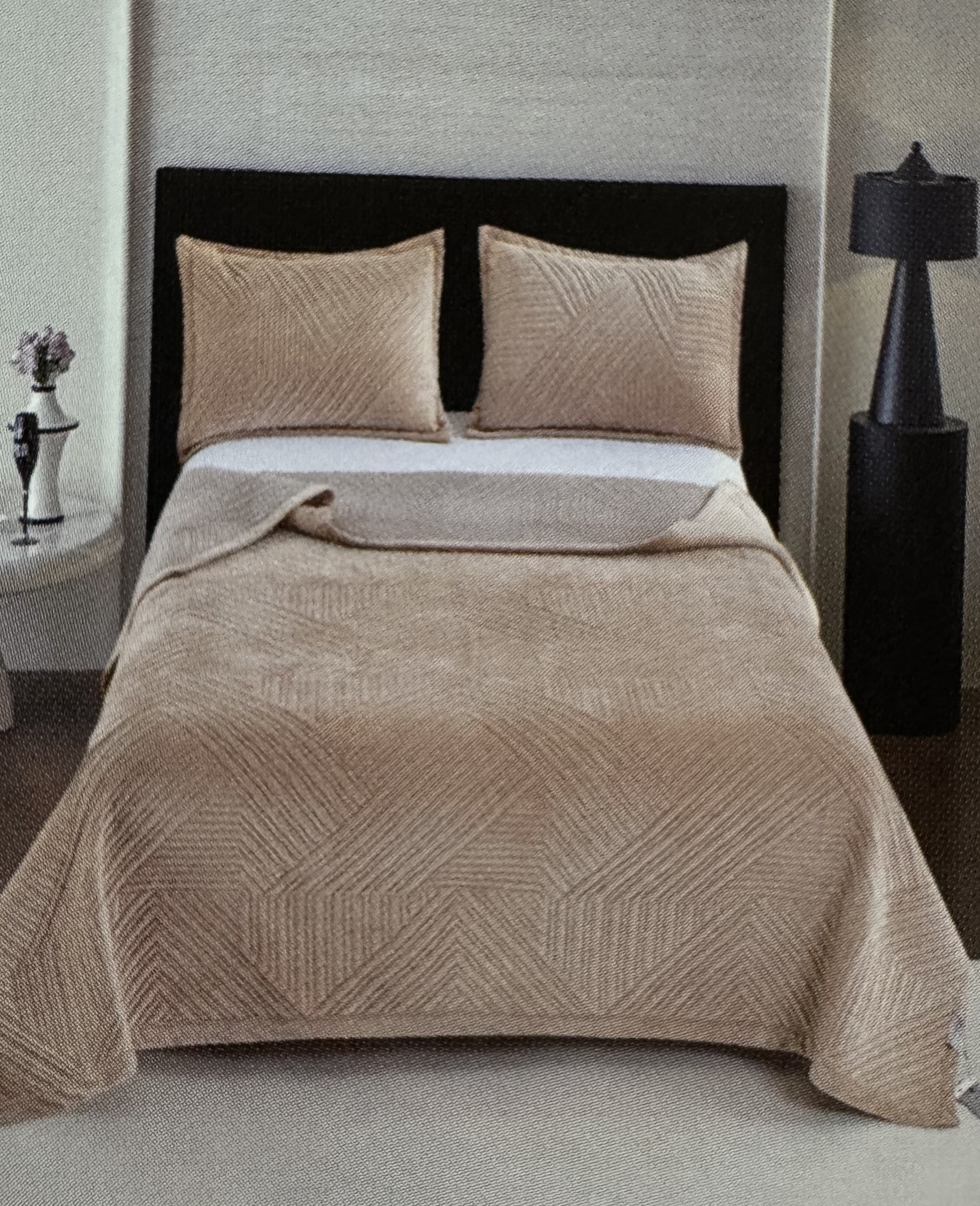 Покрывало велюровое с термо стежкой 1684902 ГЕОМЕТРИЧЕСКИЕ ФОРМЫ р-р 200х230 - бежевый