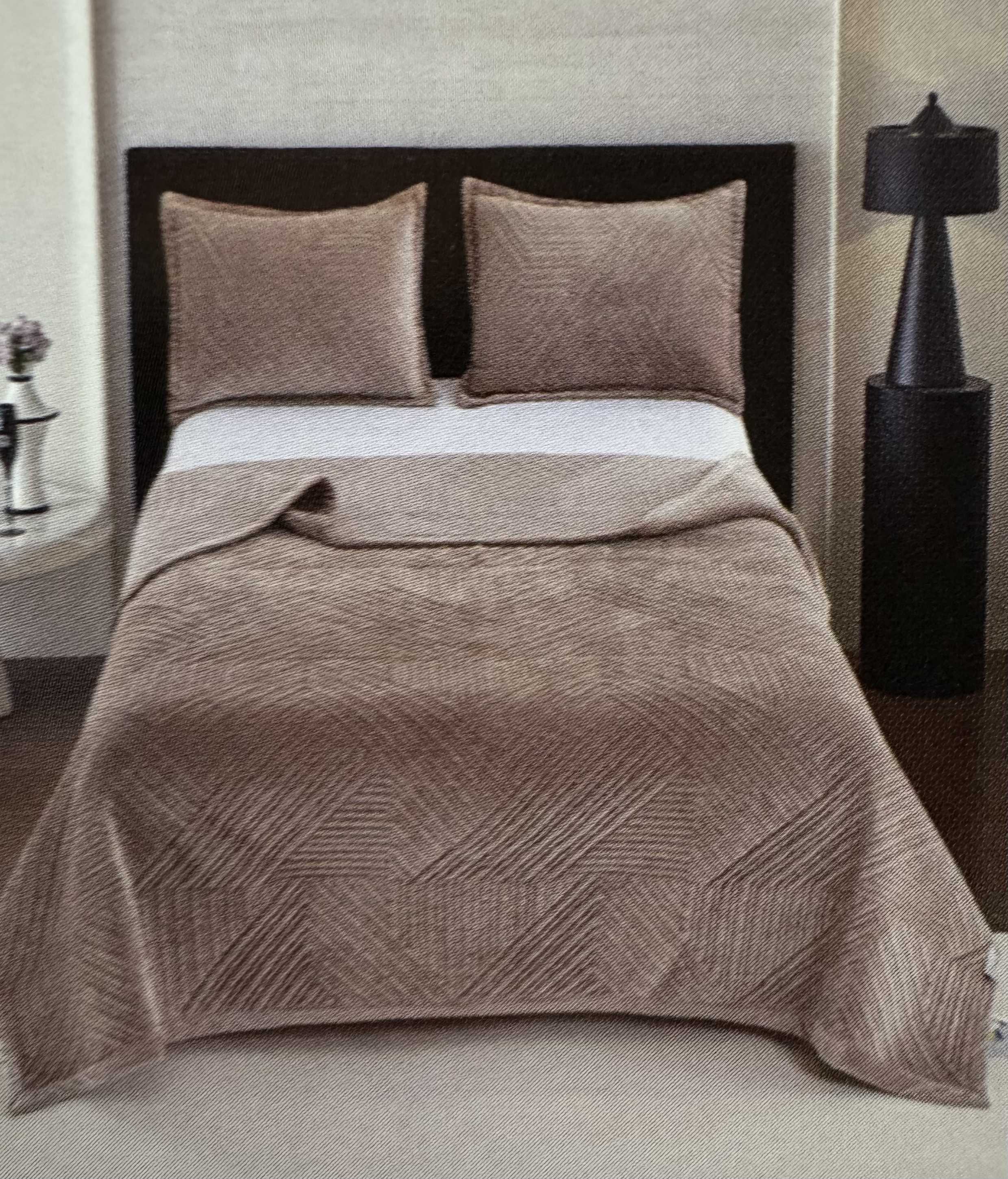 Покрывало велюровое с термо стежкой 1684902 ГЕОМЕТРИЧЕСКИЕ ФОРМЫ р-р 200х230 - серо - коричневый