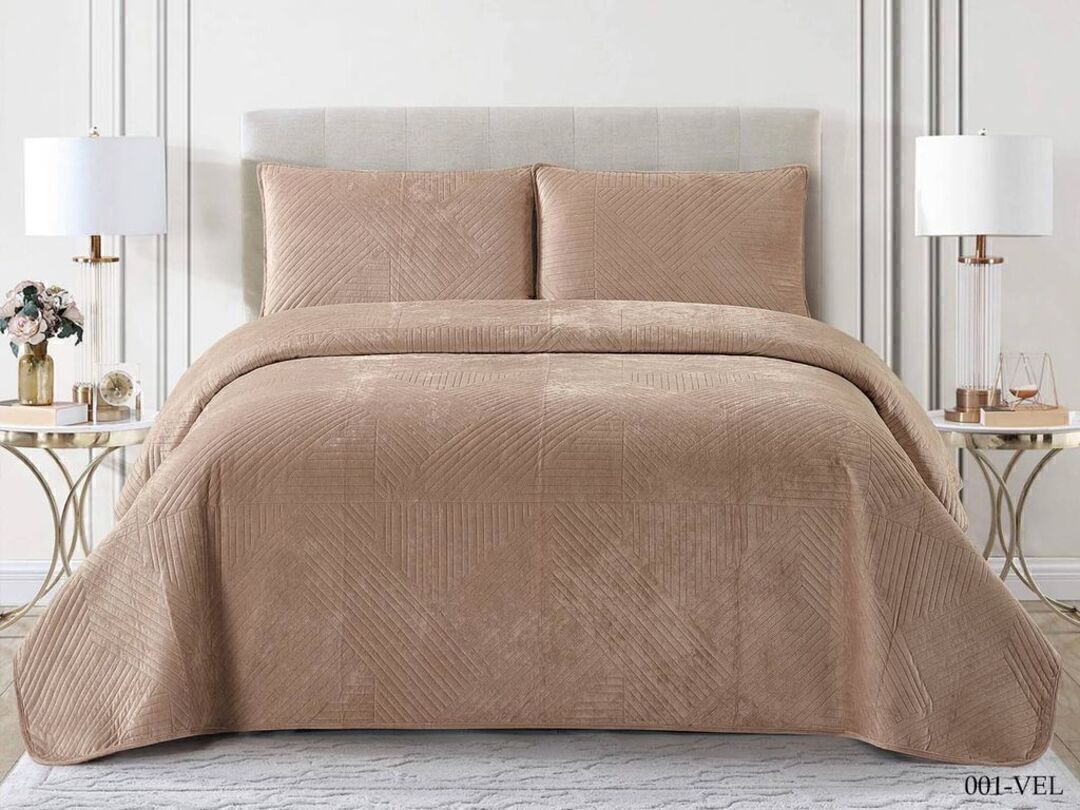 Покрывало велюровое Velluto с наволочками -2шт Клео, VEL-001, бежевый