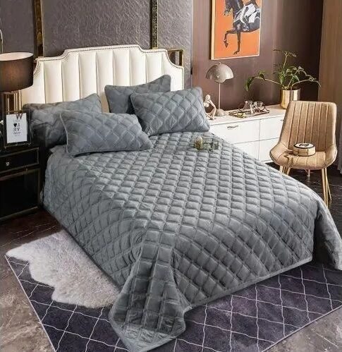 Велюровое стеганое покрывало «Ромбы» 220х240 – превосходное решение для создания уюта в спальне. Мягкий бархатный велюр на ощупь придаст ощущение роскоши и комфорта.  Этот изысканный текстильный аксессуар выполнен из гипоаллергенной ткани, что делает его лучшим выбором для людей с чувствительной кожей или аллергией. Оно изготовлено с использованием высококачественных материалов, что обеспечивает его прочность и долговечность. Способно выдержать множество стирок без потери своих качеств и внешнего вида, будь то вручную или в стиральной машине. Это дает возможность вам наслаждаться красивым пледом на протяжении долгого времени. Одним из главных преимуществ этой коллекции является простота в уходе. Изделие не садится и быстро сохнет, что значительно облегчает его поддержание в чистоте и порядке. Покрывала отлично вписываются в любой интерьер детской или взрослой спальни и станут украшением для вашей квартиры или дачи!
