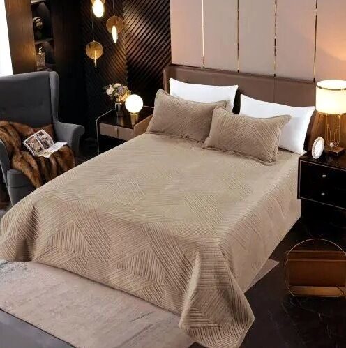 Велюровое стеганое покрывало Премиум "Шарм"-латте 220*240 см.