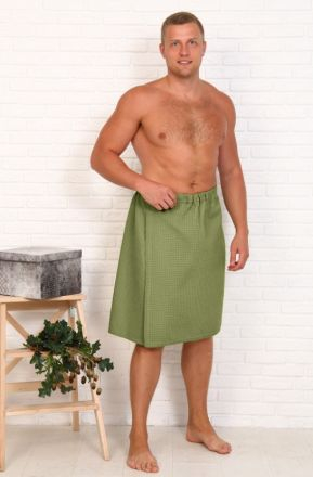 Полотенце для бани и сауны вафельное мужское (63х145), 242 гр., оливковый