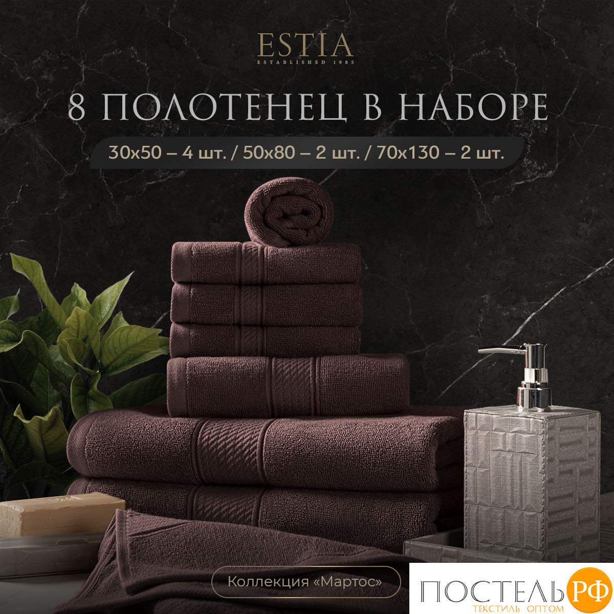 Коллекция полотенец Мартос от бренда ESTIA — сочетание качества, комфорта и элегантности для вашего дома. Набор из 8 полотенец включает 4 полотенца для рук размером 30х50 см, 2 полотенца 50х80 см и 2 больших полотенца 70х130 см, выполненные из высококачественного 100% чесаного хлопка. Мягкая махровая ткань с плотностью 500 г/м2 обеспечивает отличную впитываемость, быстрое высыхание и комфорт при использовании. Полотенца гипоаллергенны и безопасны для чувствительной кожи, что делает их идеальным выбором для всей семьи.
