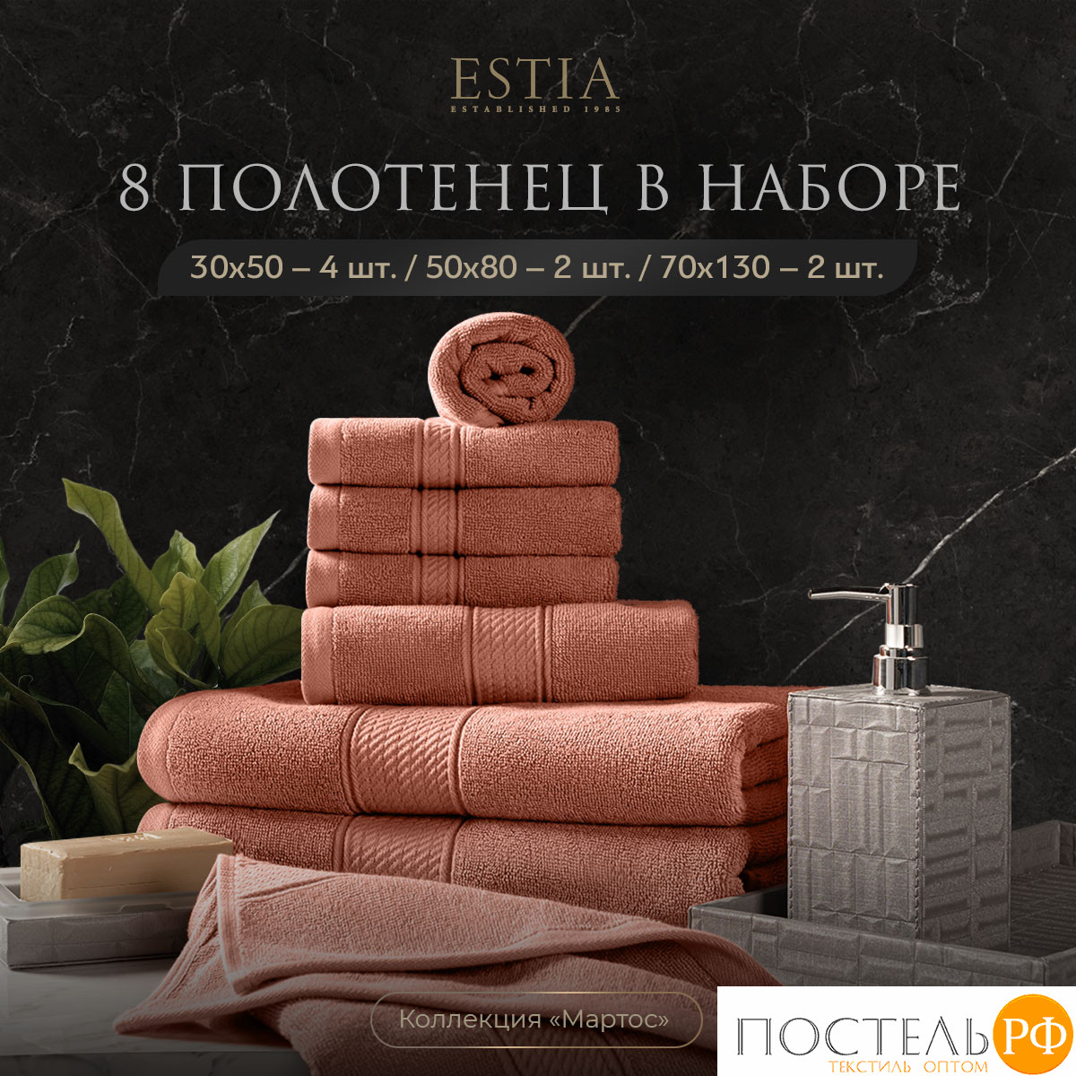 Коллекция полотенец Мартос от бренда ESTIA — сочетание качества, комфорта и элегантности для вашего дома. Набор из 8 полотенец включает 4 полотенца для рук размером 30х50 см, 2 полотенца 50х80 см и 2 больших полотенца 70х130 см, выполненные из высококачественного 100% чесаного хлопка. Мягкая махровая ткань с плотностью 500 г/м2 обеспечивает отличную впитываемость, быстрое высыхание и комфорт при использовании. Полотенца гипоаллергенны и безопасны для чувствительной кожи, что делает их идеальным выбором для всей семьи.