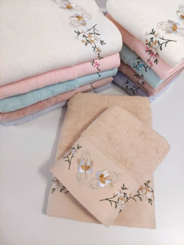 Махровое полотенце "Анютины глазки"-серебристый 70*140 см. хлопок 100%
