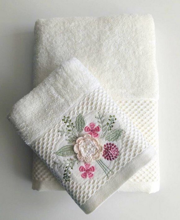 Махровое полотенце "Драгоценный цветок"-МОЛОЧНЫЙ 70*140 см. хлопок 100%