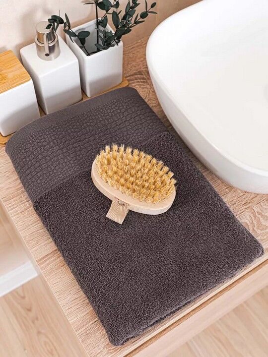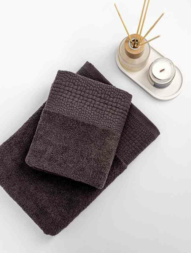 Коллекция однотонных полотенец с жаккардовым бордюром в ЭКО-стиле.