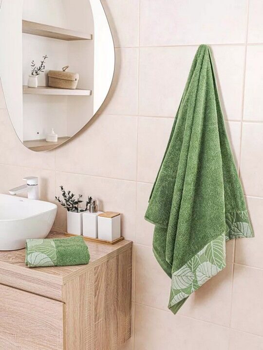 Махровое полотенце "ECO-Life Flora"- зеленый 50*80 см. хлопок 100%