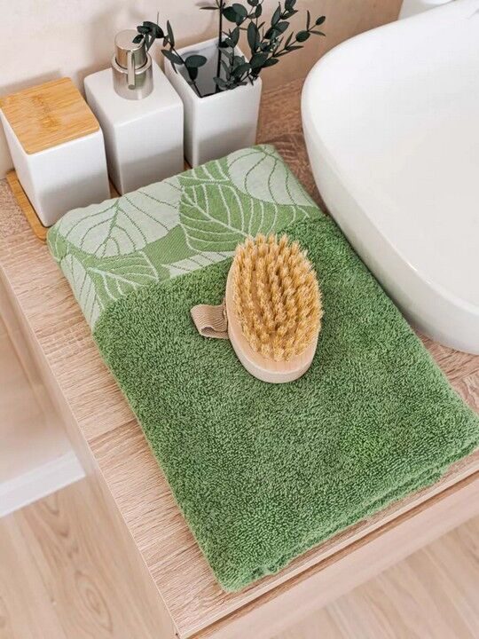 Махровое полотенце "ECO-Life Flora"- зеленый 70*130 см. хлопок 100%