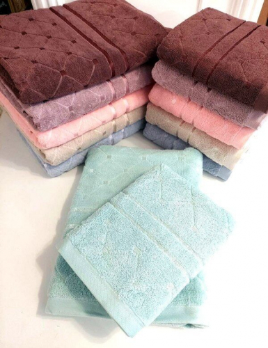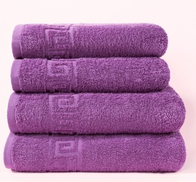 Махровое полотенце "Греческий бордюр"-фиолетовый 70*140 см. хлопок 100%