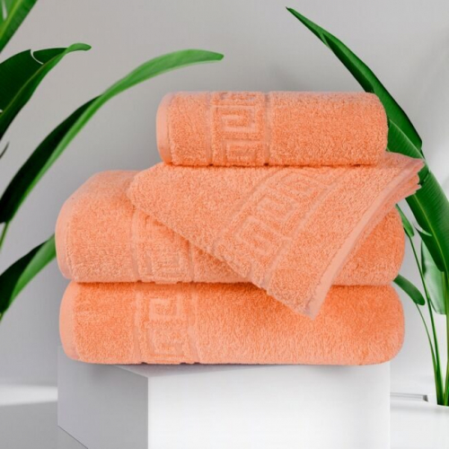Махровое полотенце "Греческий бордюр"-персик 70*140 см. хлопок 100%