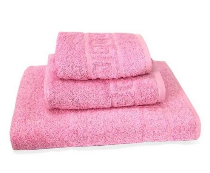 Махровое полотенце "Греческий бордюр"-розовый 70*140 см. хлопок 100%