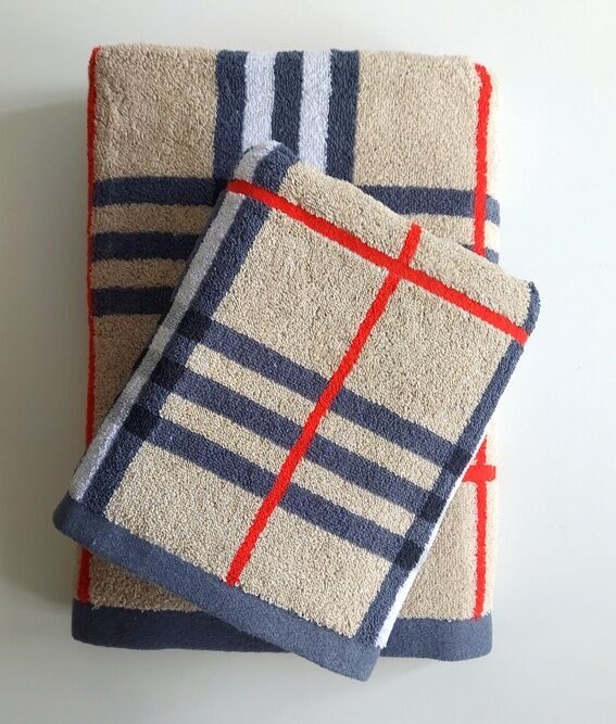Махровое полотенце "Клетка"- БЕЖЕВЫЙ 50*90 см. хлопок 100%