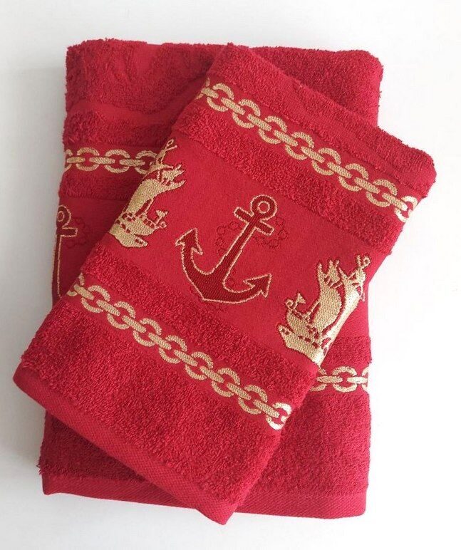 Махровое полотенце "Морское"- БОРДО 50*90 см. хлопок 100%