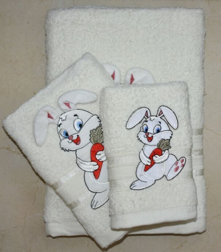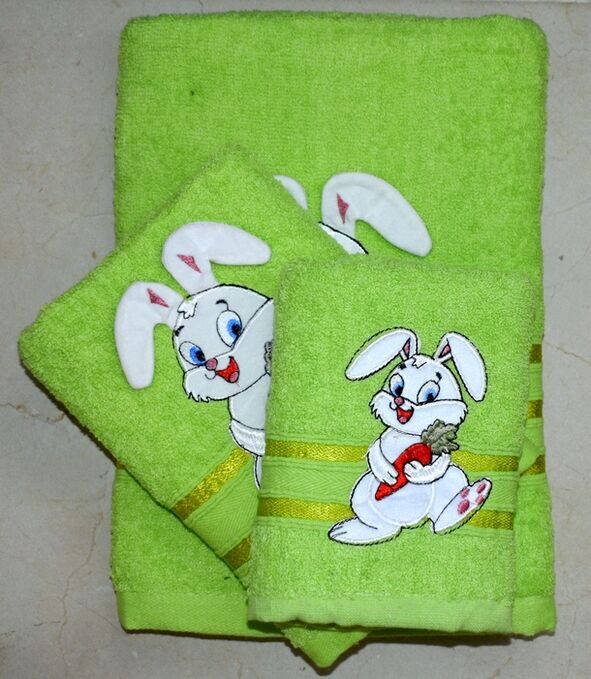 Махровое полотенце "Зайка с морковкой"- ЗЕЛЕНЫЙ 70*140 см. хлопок 100%