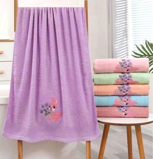 Махровое полотенце "Зайка с сиренью"-ГОЛУБОЙ 70*140 см. хлопок 100%