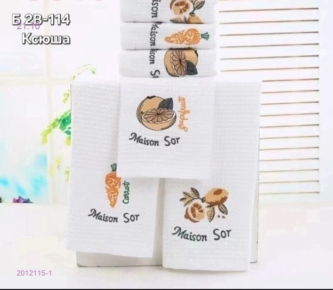 Цвет: Без Выбора ЦветаАКЦИЯ АКЦИЯ !!!Набор кухонных полотенецВ наборе 2 шт размер 40*60Качество 100 % хлопокФабричный КитайКачество ЛЮКС
