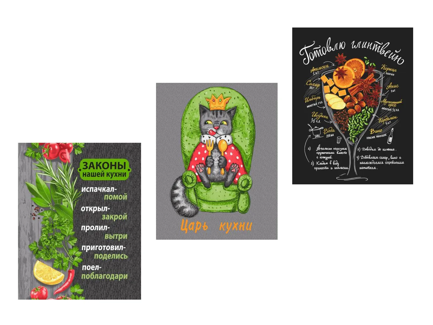 • Набор полотенец "Царь кухни" гладкое рогожка 60*45 (3шт) ТХБ