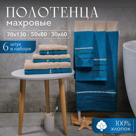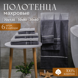 Набор полотенец махровых Аквамарин Nefertiti<6 предметов 30*60-2+50*80-2+70*130-2, цв. серый, графит>