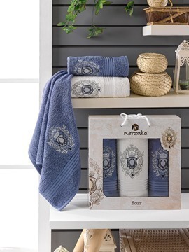 Набор полотенец махровых Boss Merzuka<3 предмета 50*80-2шт+70*130, темно-голубой> (арт.9807, 10056,10224)